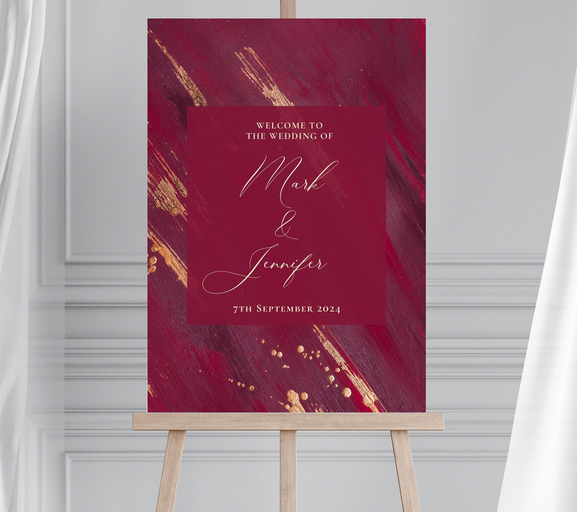 Burgundy Red and Gold Wedding Welcome Sign, Berry and Gold Luxury Wedding Welcome Sign, Maroon Wedding Sign, Winter Deep Red Wedding Sign