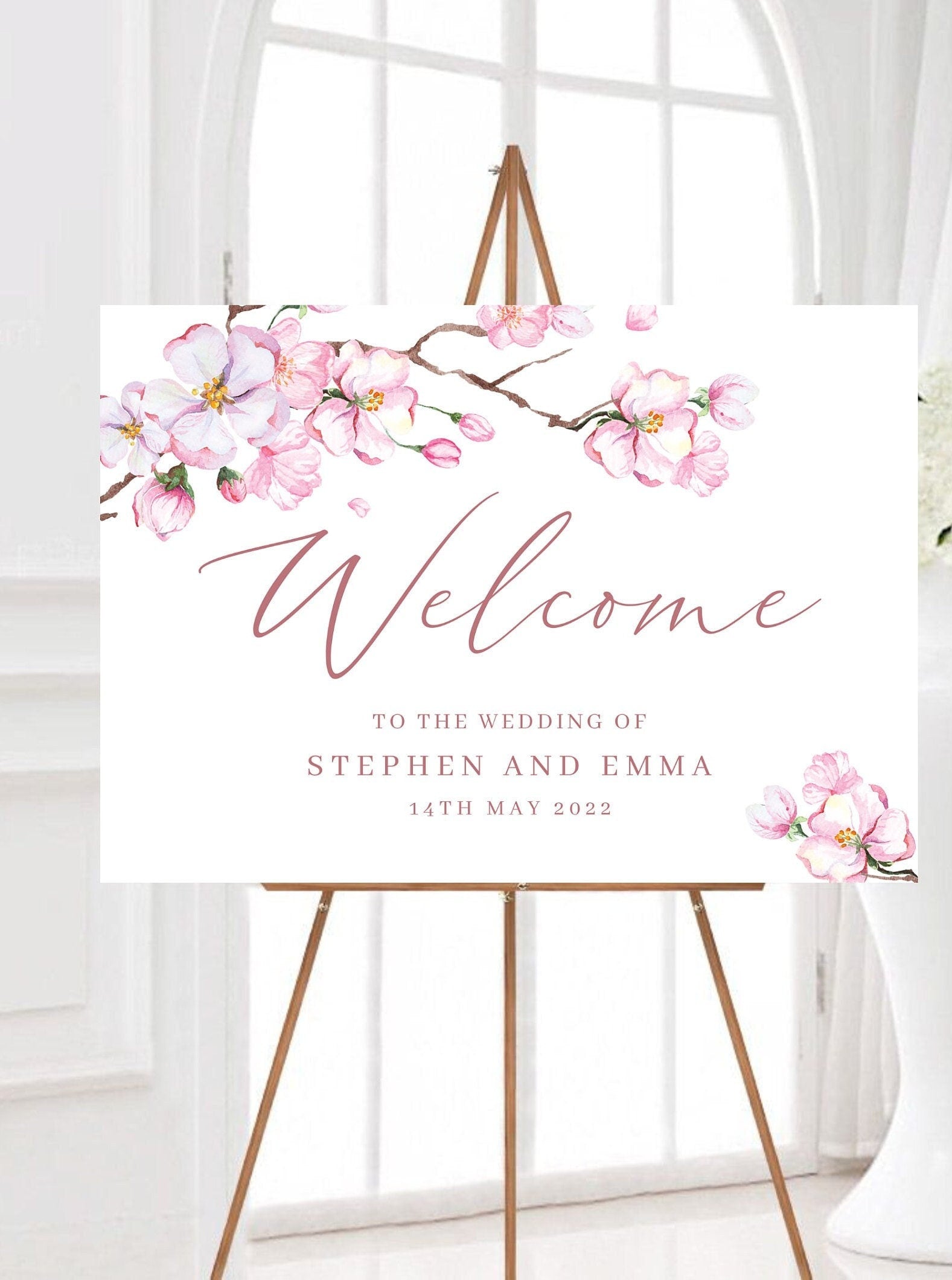 Cherry Blossom Wedding Welcome Sign, Blush Pink Floral Welcome Sign, Sakura Wedding Sign, Pink Wedding Sign