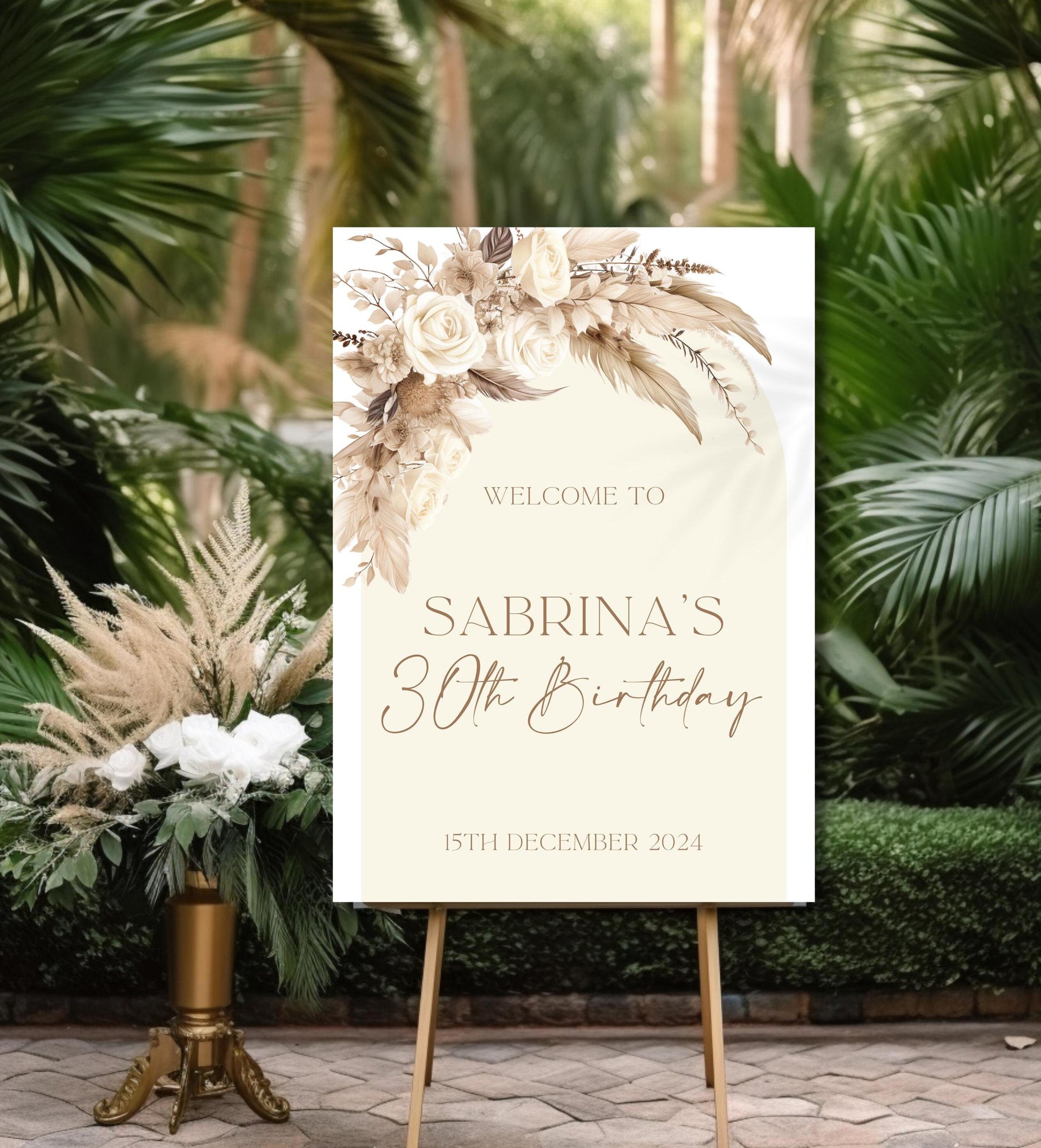Pampas Themed Bridal Shower Welcome Sign, Boho Chic Hen Party Welcome Sign, Pampas Themed Party, Pampas Baby Shower Printed Board